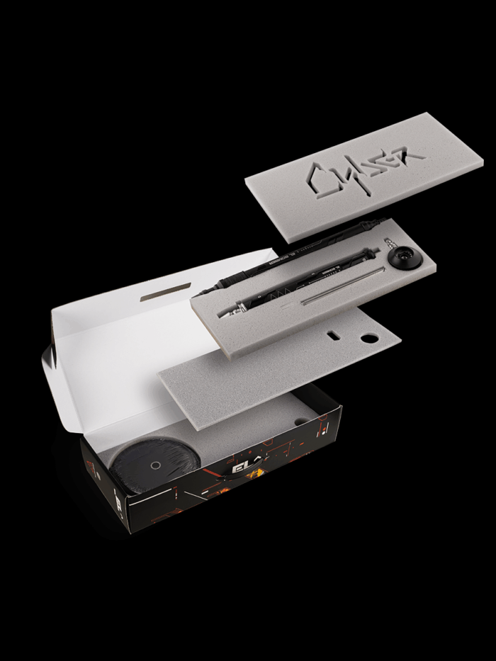 サイバーパンクをブランド独自の方法で体現しました。鮮やかなアクセントを排したオールブラックのデザインです。グラフィック要素は進歩とハイテクノロジーを象徴し、モデルの高さとボリュームのあるマーポーチは伝統の精神を呼び起こします。