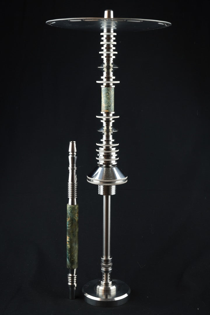 V3が並外れたシーシャであることは一目瞭然です。煙柱は、細工の施された複数のステンレス鋼の要素で構成されています。